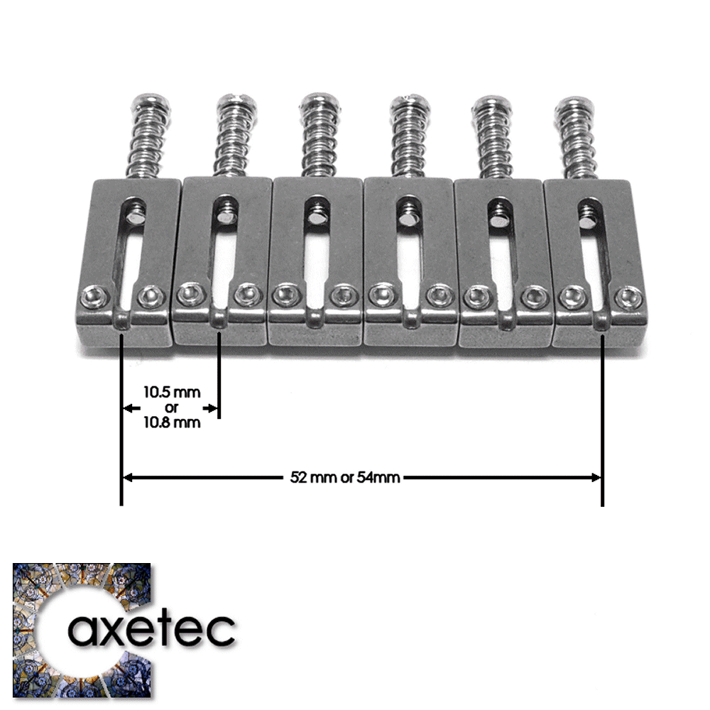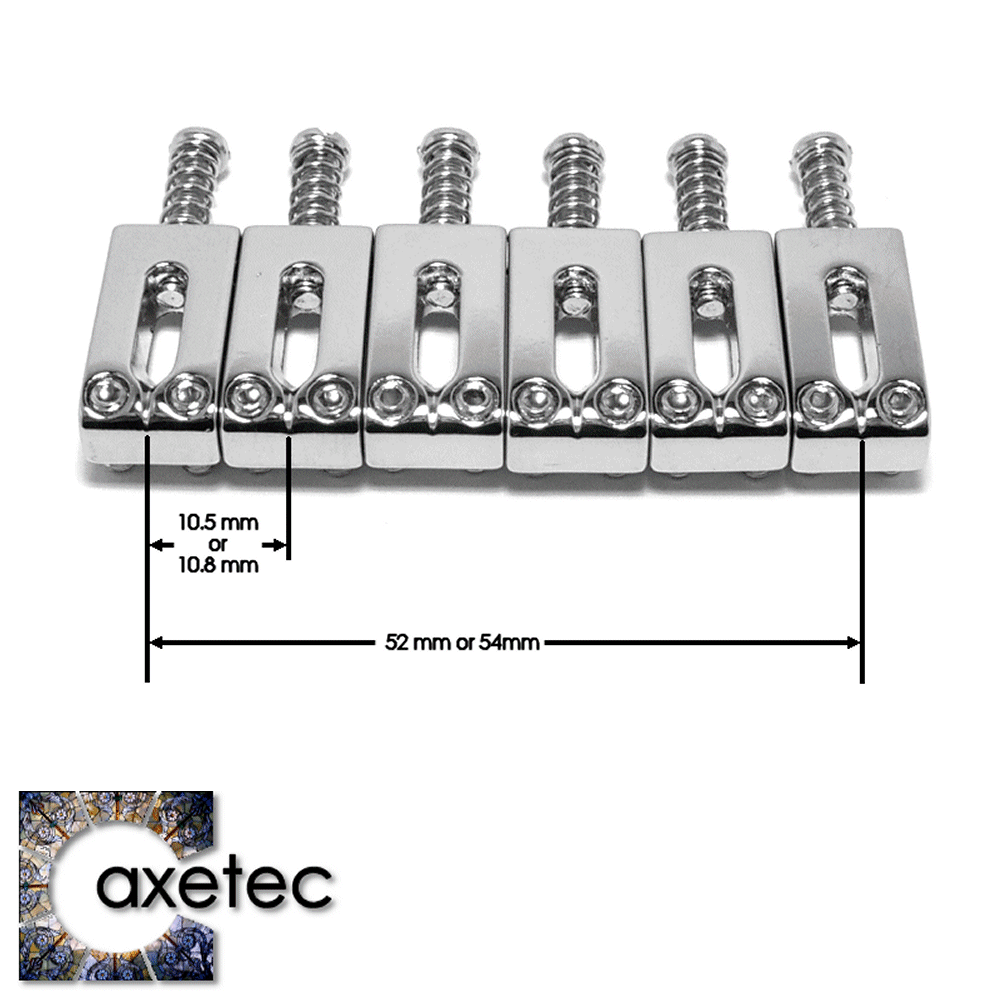 Tip: These saddles are available in two different widths for 52mm or 54mm string spacing. Before ordering, measure the distance between your top & bottom "E" string at the bridge.