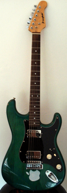 This is my third rebuild. This guitar was originally from a pre-loved shop when I was on holiday. It's an old Westfield and a bit shappy, the body and neck are mahogany in a green stain finish.