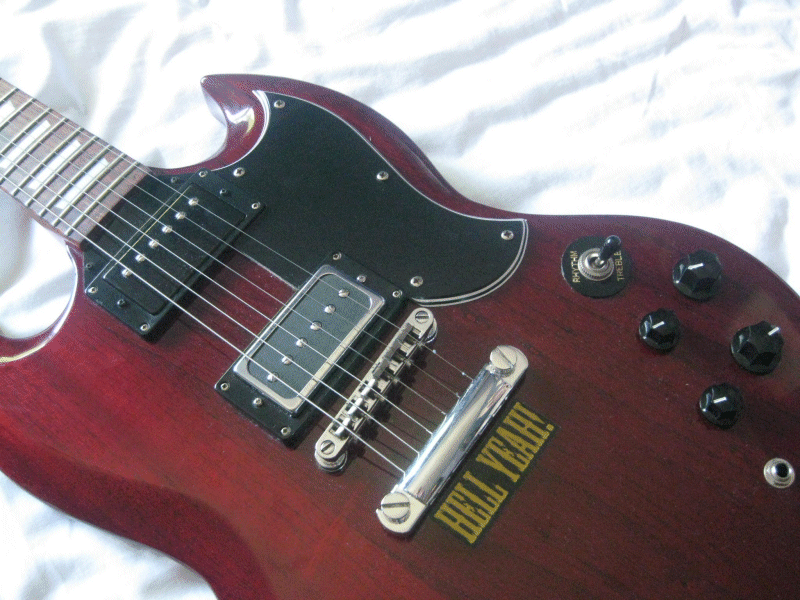Pickups are 2 Hotslags with a single tone, volume and a 3-way selector switch. The guitar is very light and screams. Even with a little gain the tone is amazing and even at high volumes it doesn't loose its clarity.