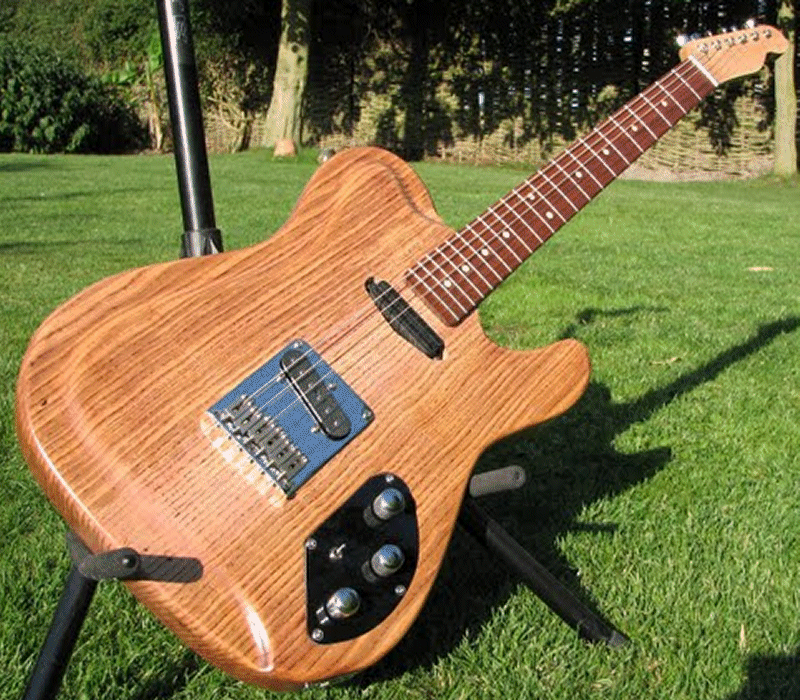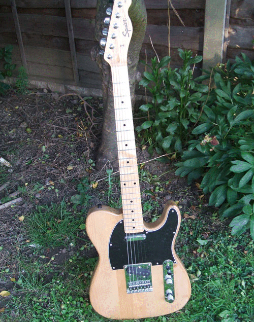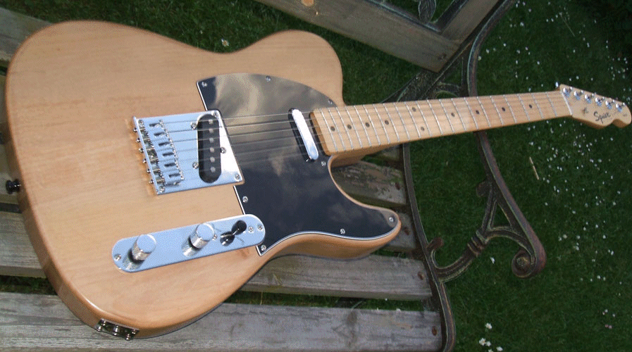 This guitar started life as a standard Squier Tele, but I wasn’t keen on the sound. I thought the original body was too light, so I hunted around until I got my hands on an unfinished alder body blank.
