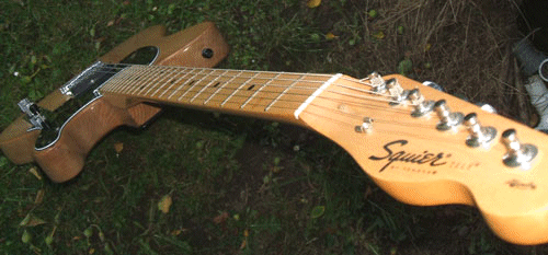 The 'Frank'n'Stien" started life as a poor, no, woeful Squier Affinity Strat. I bought it because the neck was straight and I thought I could tart it up and sell it for a profit.