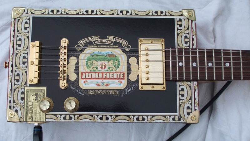 I thought you would like to see three guitars I made for clients recently. The one in plain wood is called 'Delta Lightening' built on the cigar box idea, the other two are cigar boxes, and have gone together really well. the Punch one is called 'The Handsome Stranger' and the Ramon Allones box is called 'The Redhead'. All were received well by the clients and I've even been accused of being a craftsman by one of them.All are set up to be played both finger style or slide,and carry your 'Hi Wires' strings,volume controls and jack sockets. I will be bringing in boxes from the USA to offer something different in the future because I'm retiring in February and looking to earn a little income. So there you are it's DELTA BLUES SLIDE GUITARS next year.